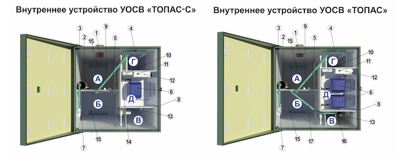 Внутреннее устройство автономной канализации ТОПАС 4 и принцип работы